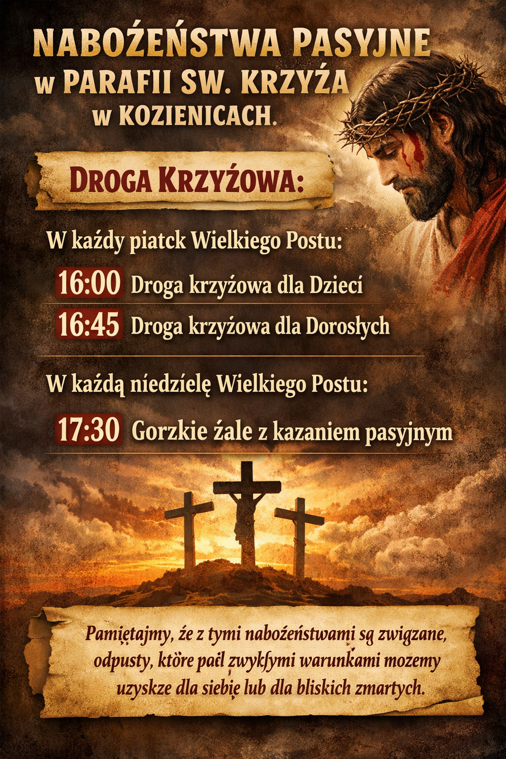 Zapraszamy na związane z okresem Wielkiego Postu Nabożeństwa Pasyjne: Droga Krzyżowa